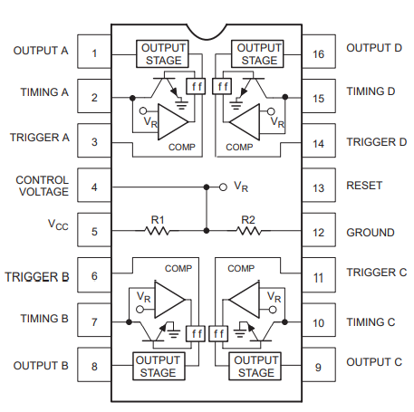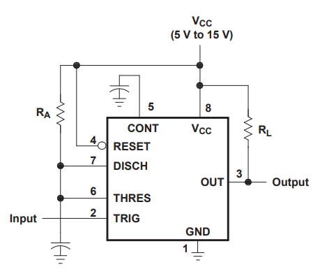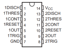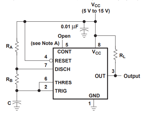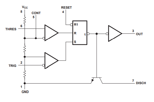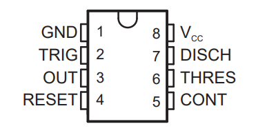 | 7 | DIS | Discharge ต่อตัวเก็บประจุ เพื่อใช้การคายประจุเป็นตัวกำหนดความถี่ของ Output |
