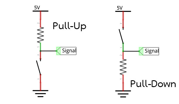 หลังจากที่รู้กันแล้วว่า Pull-Up และ Pull-Down มันต่างกันตรงไหน และแต่ละอันมันทำงานแบบใด ทีนี้ก็สามารถนำไปใช้งานและออกแบบโปรแกรมได้แล้ว สำหรับค่าของตัวต้านทานที่ใช้ในวงจรก็ใช้ระหว่าง 4.7k ถึง 10k ใช้ค่าใดก็ได้ที่อยู่ในช่วงนี้ หยิบมาใช้งานได้เลยหนึ่งค่า